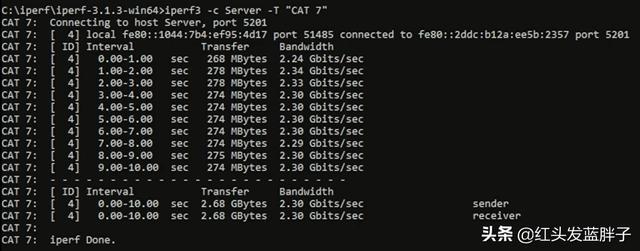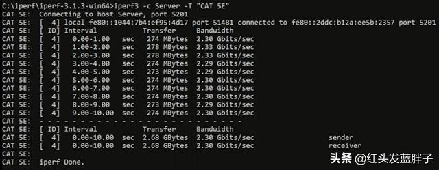3,iperf3测试超5类、6类和7类网线能否支持2.5Gbps带宽