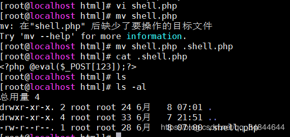 隐藏一句话mv shell.php .shell.php,linux一般人喜欢用ls 而不是ls -al