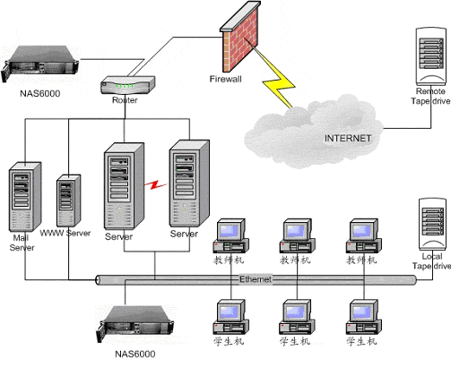 存储设备是通过电缆(通常是SCSI接口电缆)直接挂到服务器总线上,存储设备只与一台独立的主机连接,其他主机不能使用这个存储设备。