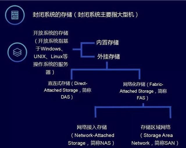 DAS,FAS存储都是属于开放系统存储里的外挂存储,分别是:
