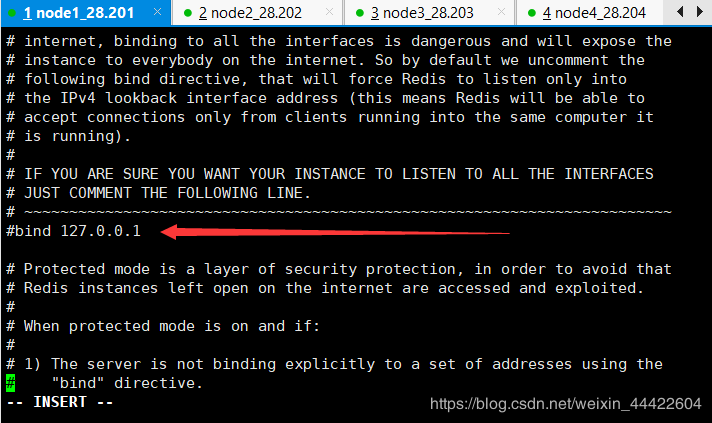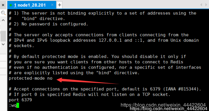 (3)protected-mode no ,作用:将远程保护模式关闭,改为no
