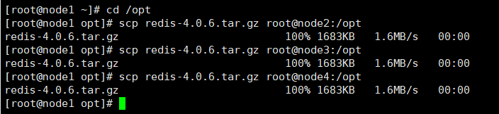 命令:scp redis-4.0.6.tar.gz root@node4:/opt
