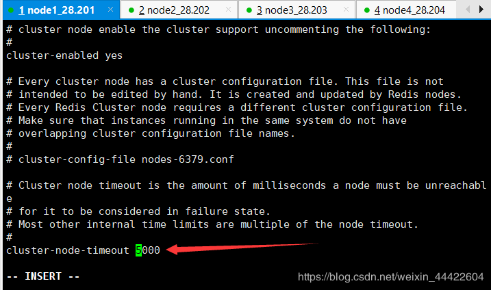 1.由于是四个节点,搭建redis集群最少要6个节点,3主3从架构,所以在node1, node2(根据自己搭建环境来选择,我选的是节点1跟2)上分别增加一个端口