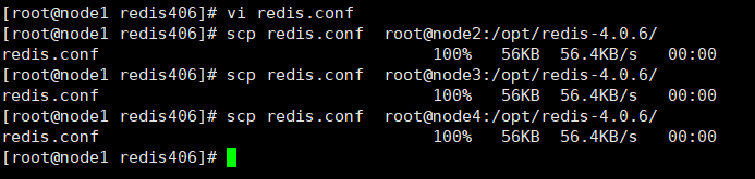 命令:scp redis.conf root@node4:/opt/redis-4.0.6/