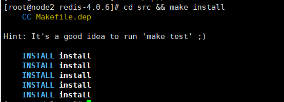 (6)node2上面的redis安装在了 /opt/redis-4.0.6下,所以进入到这个目录的src下执行命令