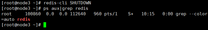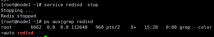 查看redis进程,确认其关闭,命令:ps aux|grep redisd