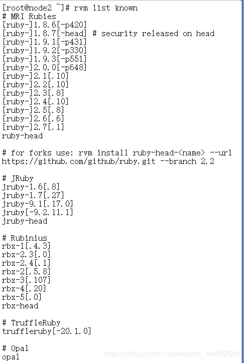 命令:rvm list known